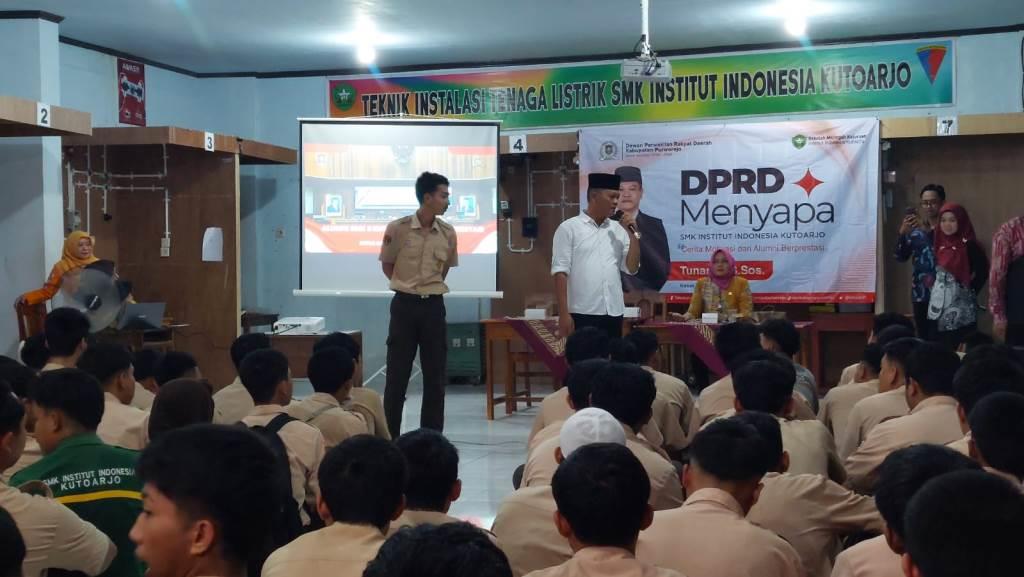 KUTOARJO, epurworejo.com – Ketua DPRD Kabupaten Purworejo, Tunaryo S.Sos berkunjung ke SMK ii Kutoarjo dalam program bertajuk DPRD Menyapa, Jumat (23/1/2026). Tunaryo hadir menyuntikkan motivasi kepada ratusan siswa kelas XII di sekolah setempat.