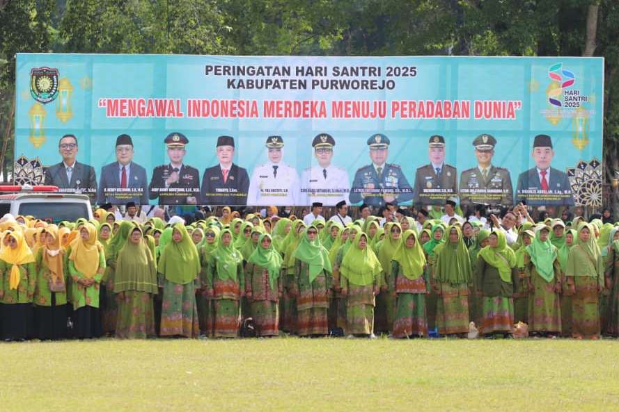PURWOREJO, epurworejo.com – Pemerintah Kabupaten Purworejo menggelar Apel Peringatan Hari Santri Tahun 2025 tingkat kabupaten dengan tema “Mengawal Indonesia Merdeka Menuju Peradaban Dunia”. Kegiatan dipusatkan di Alun-alun Purworejo pada Rabu (22/10/2025), berlangsung dalam nuansa spiritual, nasionalis, dan penuh khidmat.
