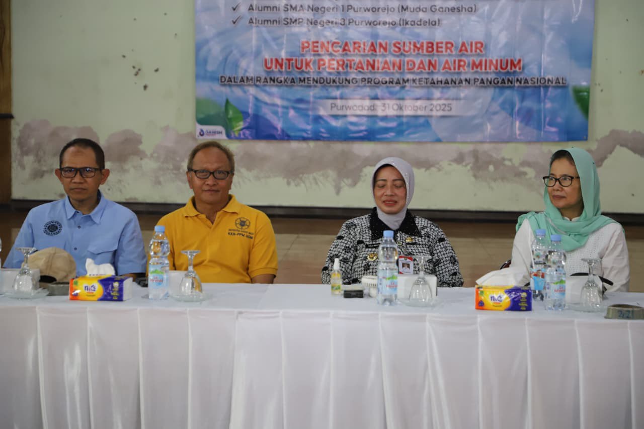 Hal tersebut disampaikan Bupati Purworejo, Yuli Hastuti SH, saat meresmikan secara simbolis enam sumur bor Program Bakti Sosial Penyediaan Air untuk Pertanian dan Air Minum, hasil kerja sama dari Sekolah Pascasarjana Universitas Gadjah Mada Yogyakarta, Alumni SMA Negeri 1 Purworejo (Muda Ganesha), serta Alumni SMP Negeri 8 Purworejo (Ikadela), yang berlangsung di Balai Desa Purwodadi Kecamatan Purwodadi, Jumat (31/10/2025).