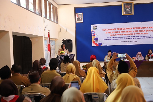 PURWOREJO, epurworejo.com– Dengan masih ditemukannya kasus pernikahan dini di wilayah Kabupaten Purworejo, Pemerintah Kabupaten Purworejo terus memperkuat upaya pencegahan secara persuasif dan berkelanjutan. Salah satunya melalui pelaksanaan Sosialisasi Pencegahan Pernikahan Anak dan Pelatihan Konvensi Hak Anak (KHA) yang diselenggarakan oleh Dinas Pemberdayaan Perempuan dan Perlindungan Anak serta Pemberdayaan Masyarakat dan Desa (DPPPAPMD) Kabupaten Purworejo, yang dilangsungkan di Aula PKK Kabupaten Purworejo, Selasa (14/4/2026).