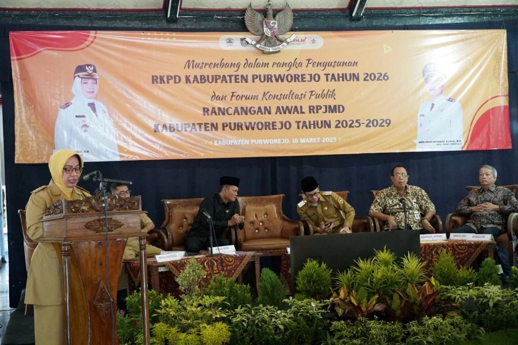 Disampaikan Bupati, Musrenbang dilaksanakan dalam rangka penyusunan Rencana Kerja Pemerintah Daerah (RKPD) Kabupaten Purworejo Tahun 2026, yang menjadi tahun pertama pelaksanaan RPJMD Kabupaten Purworejo tahun 2025-2029.