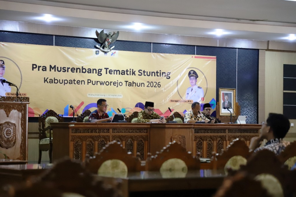 PURWOREJO, epurworejo.com – Pemerintah Kabupaten Purworejo menggelar Pra Musrenbang Tematik Stunting di Ruang Arahiwang Setda Kabupaten Purworejo, Kamis (12/03/2026). Kegiatan ini digelar sebagai upaya memperkuat strategi percepatan penanganan stunting guna mencapai target nasional sebesar 14 persen.